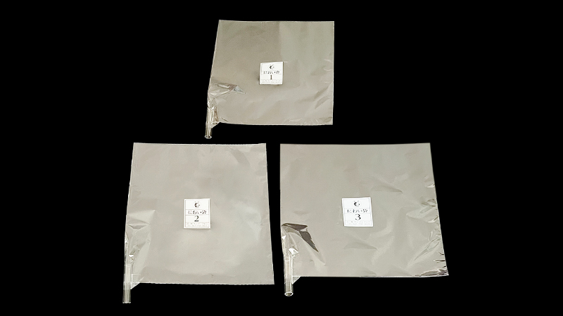 フィルム特有のにおいが他のフィルムに比べとても少ないPETフィルムを使用。官能試験(3点比較法)用としてご使用頂いております。