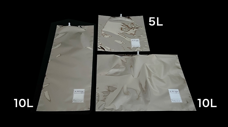 フィルム特有のにおいが他のフィルムに比べとても少ないPETフィルムの上にアルミ蒸着をしたフィルムで作製。遮光性も兼ねたバッグです。